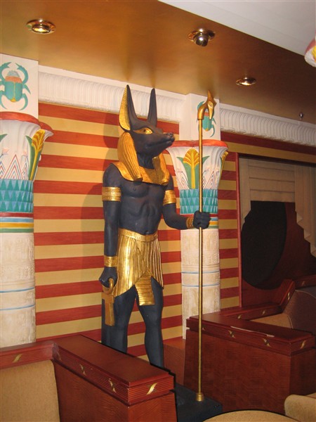 Egyptian Anubis statue with a scepter and ankh sign on our cruise ship