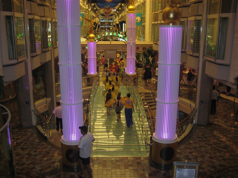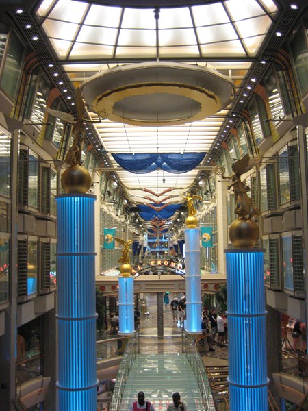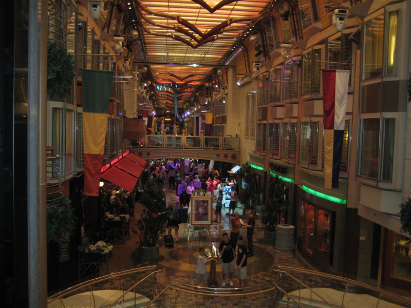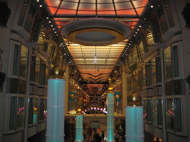 The arcade with shops on board from the front of the ship