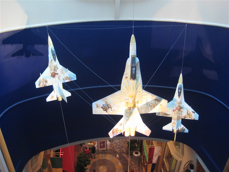 Models of three fighters on the ship