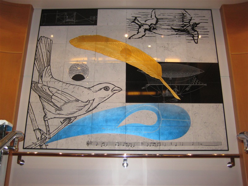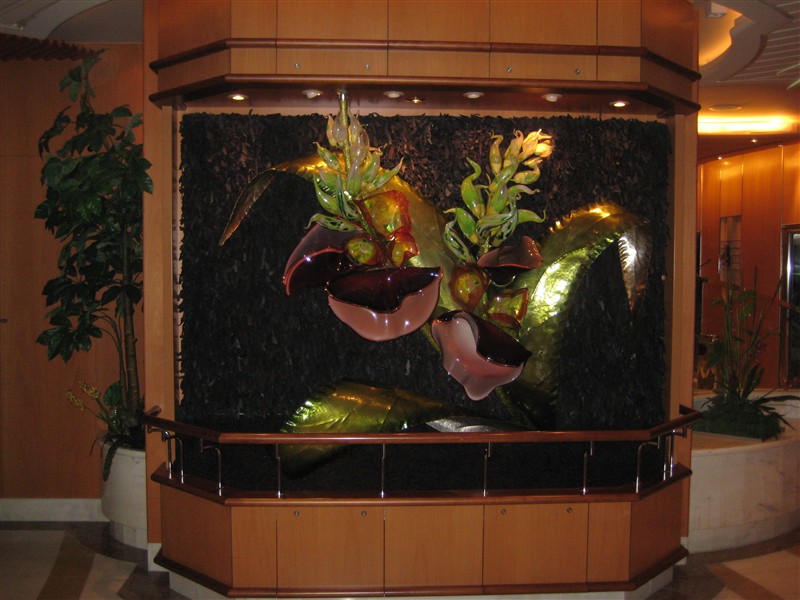 Glaskonst i en av salongerna ombord