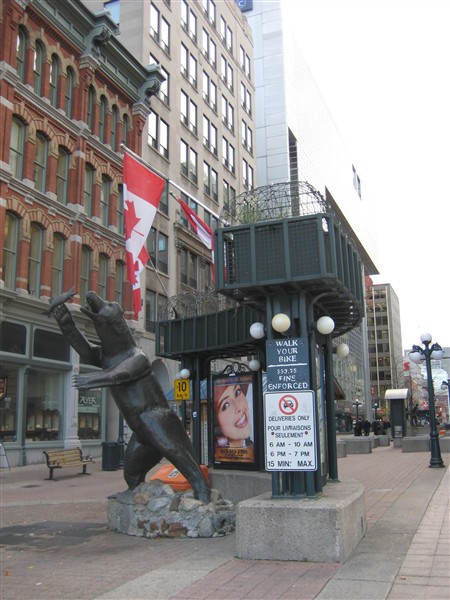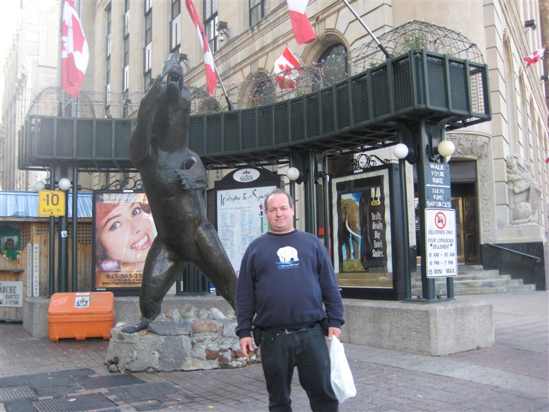 I in front of a statue of a grizzly bear at Central Post Office in Ottawa