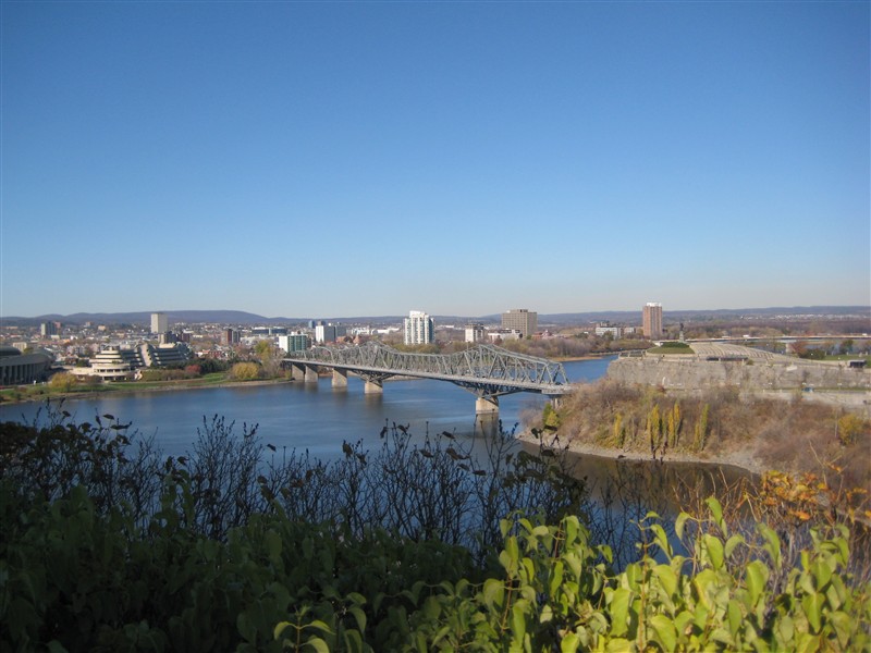Utsikt mot Alexandra Bridge och provinsen Quebec på andra sidan av Ottawa floden