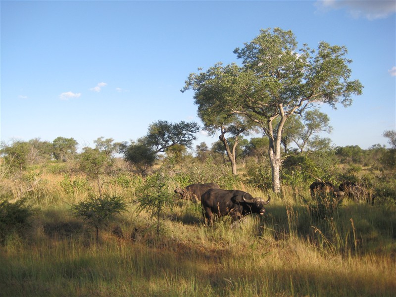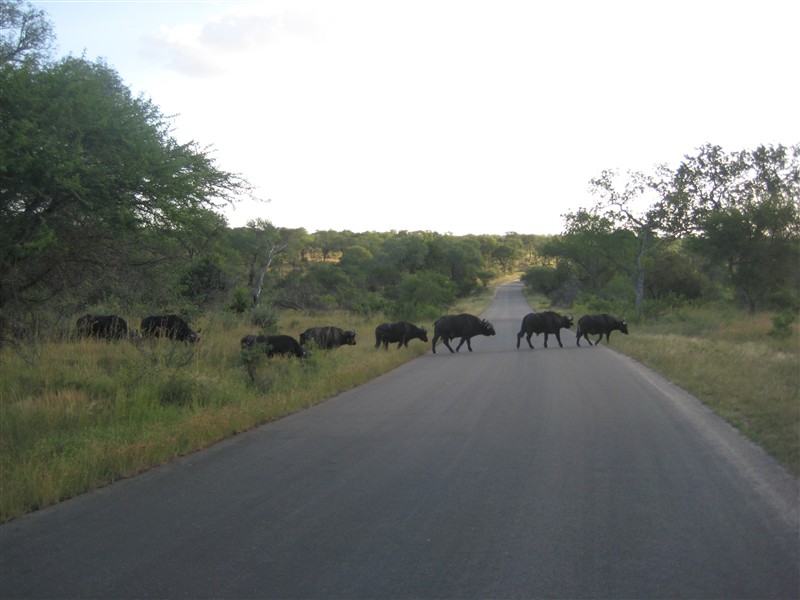 Buffalos who without notice cross the road in front of our jeep