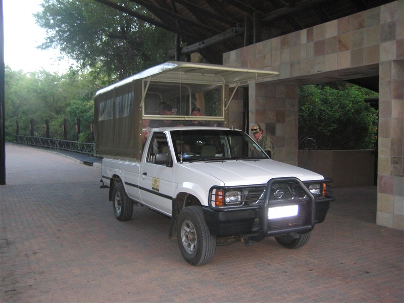 Der Jeep mit dem wir zeitig nächsten Morgen auf Safari fuhren