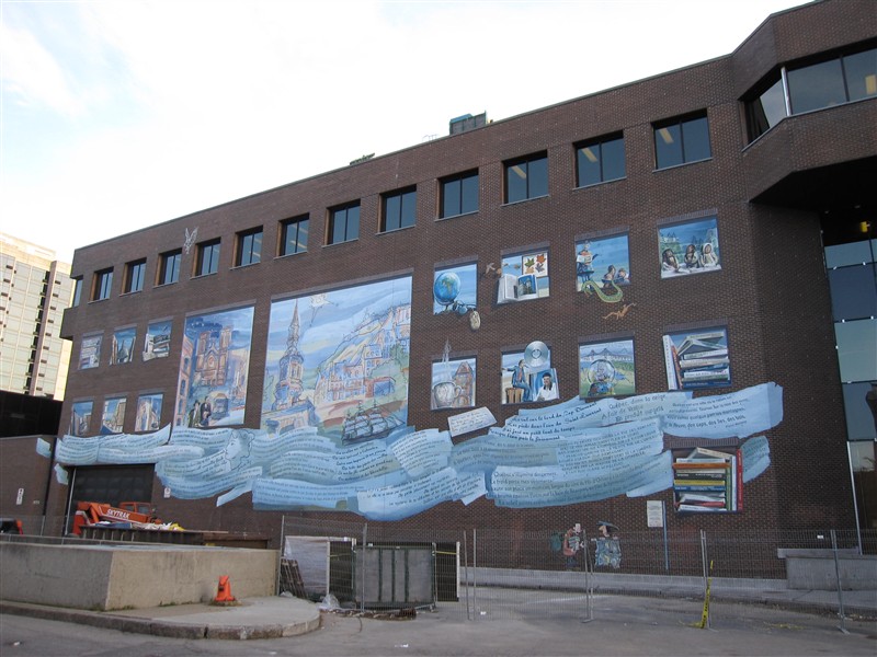 Konstverk målade på en vägg av biblioteket Gabrielle-Roy