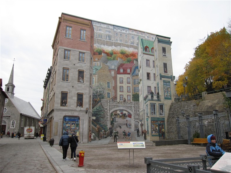 Rural painting on a facade at Place Royal in Quebec City