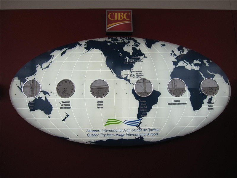 Information of different times in the world on the airport Jean Lesage in Quebec City