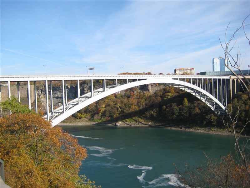The 442 meter long Rainbow Bridge from 1941 connects Canada and the USA over the 58 km long Niagara River