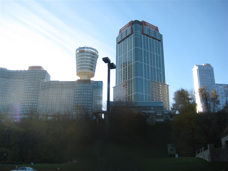Huge luxury hotels at the Horseshoe Falls in Canada
