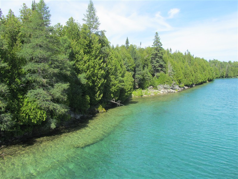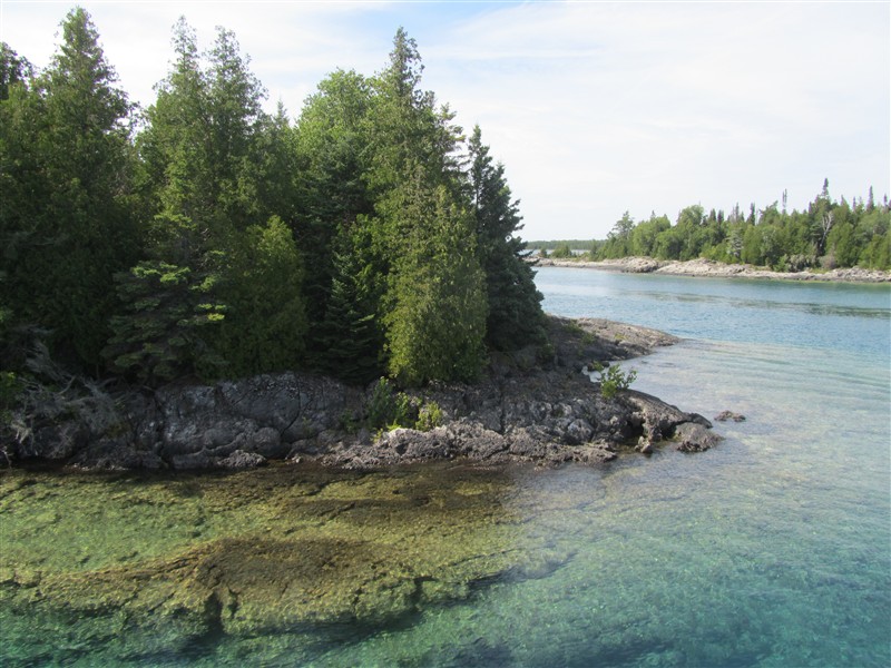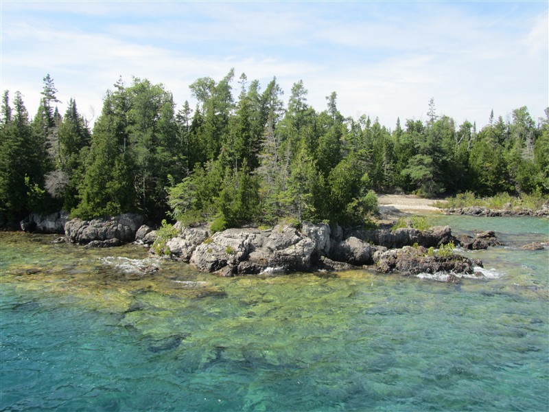 Forest overgrown island in the lake Huron