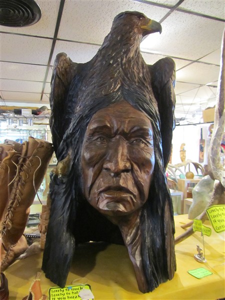 Holzskulptur von einem Indianerhäuptling