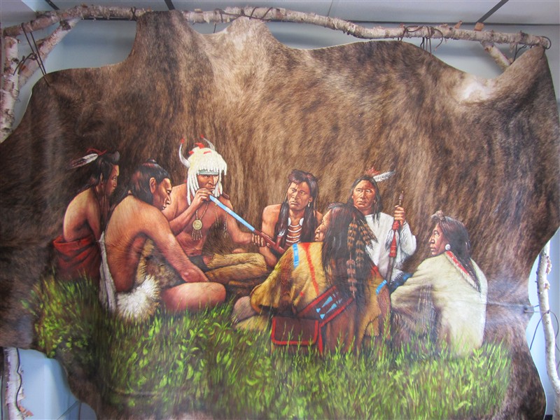 Konst där indianer sitter i möte