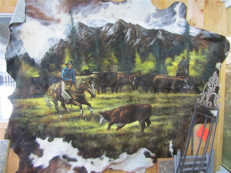 Art by first nation citizens where a cowboy catches a calf