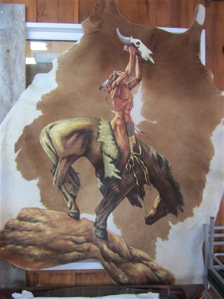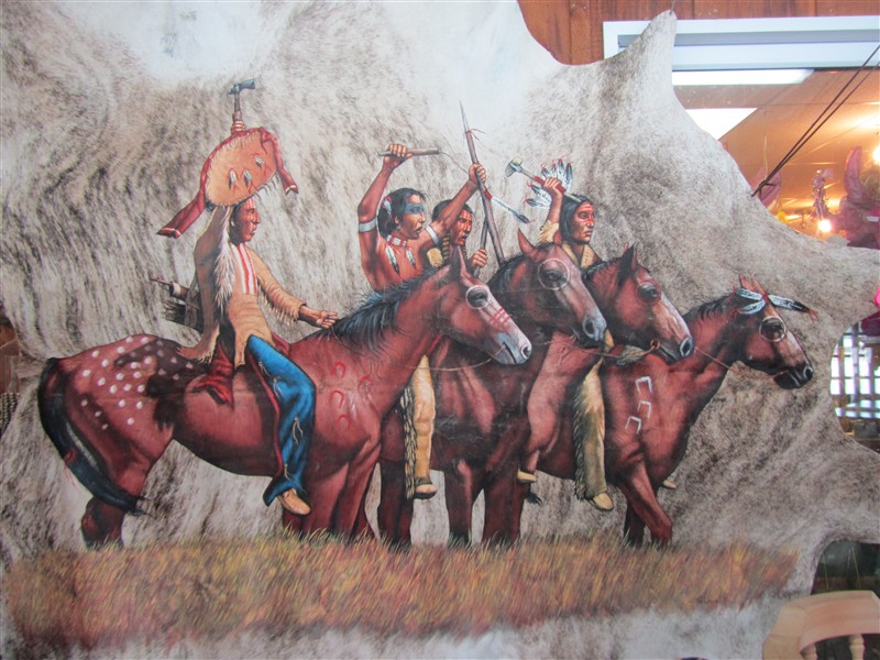 Kunst von Indianer auf einem Bisonschädel