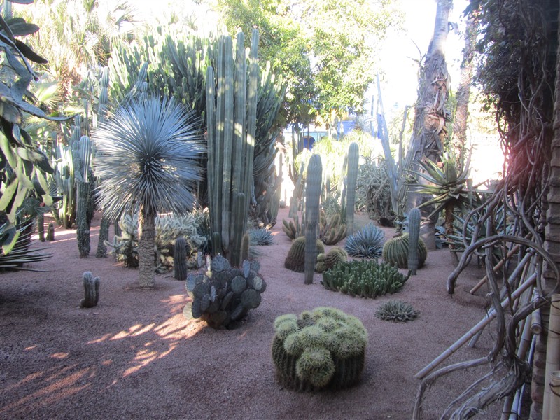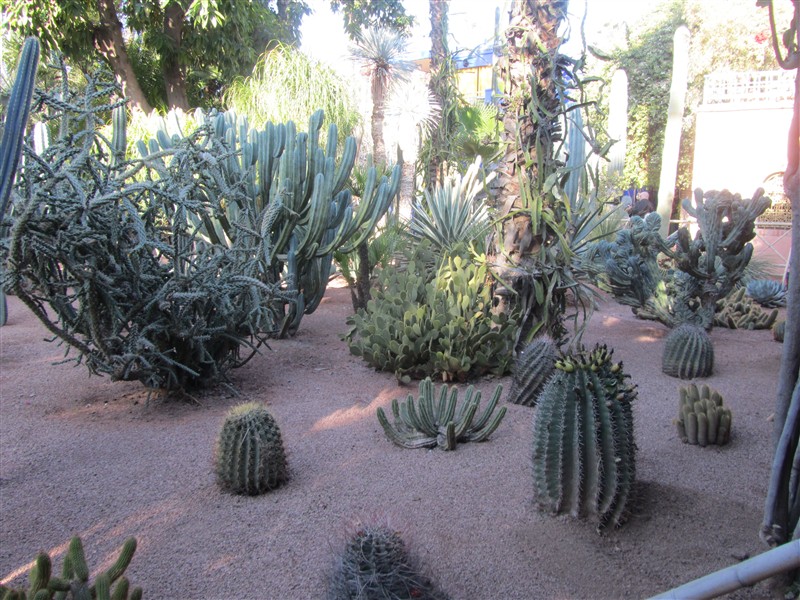 Large cactuses along the path in Jardin Majorelle