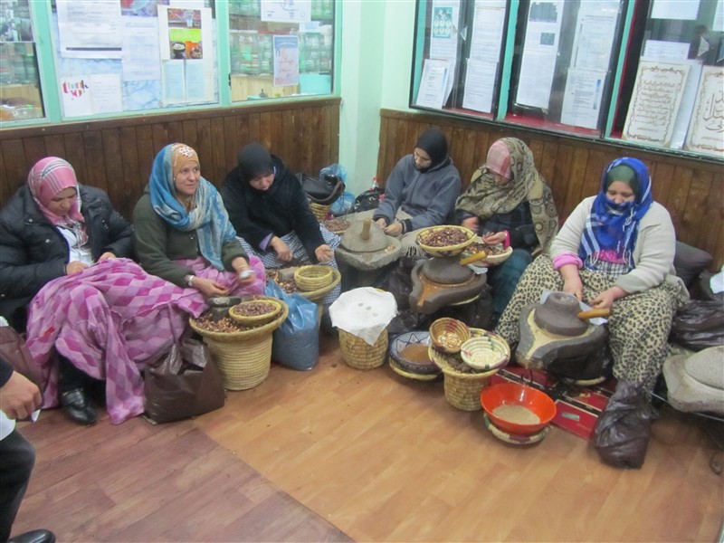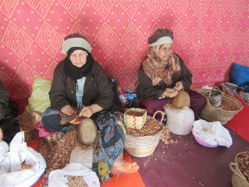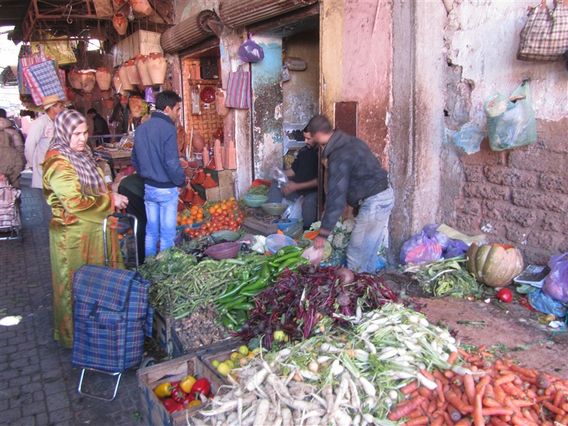 Older Moroccan women with djellaba in a souk in the Medina