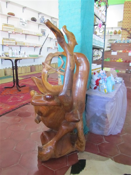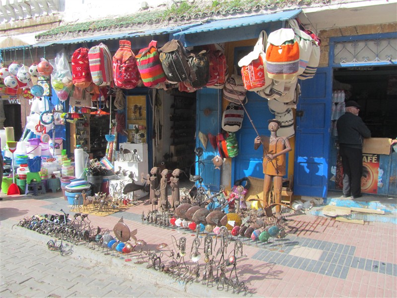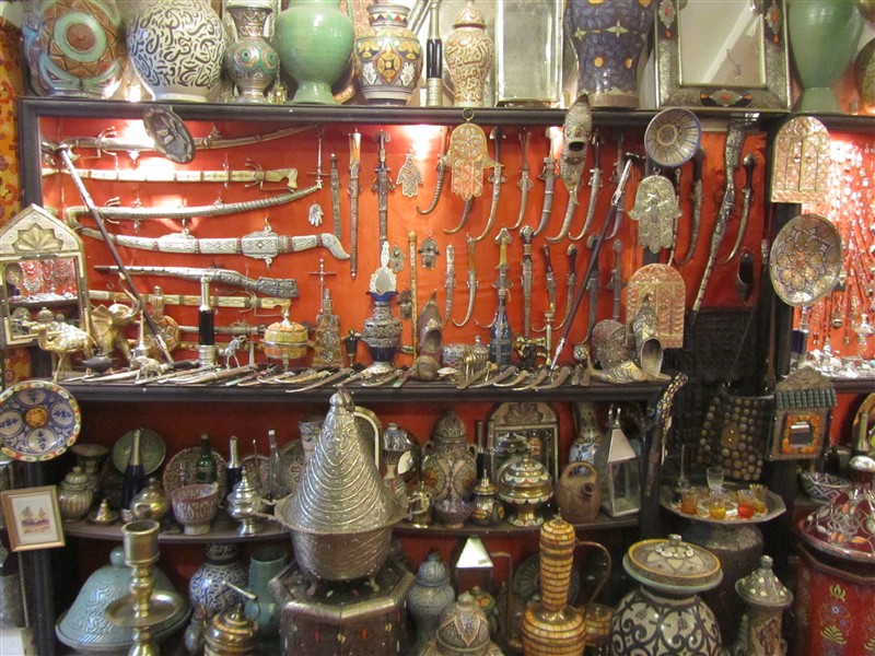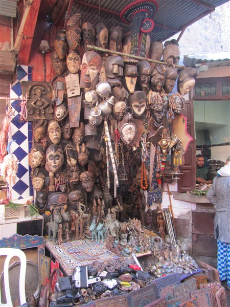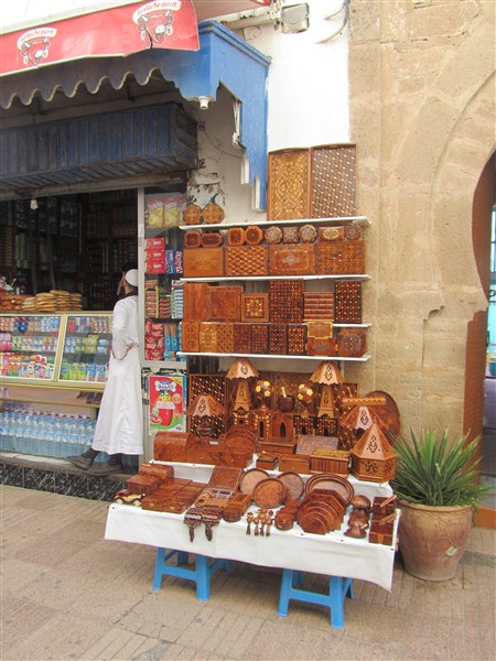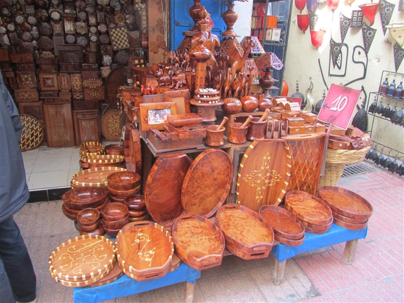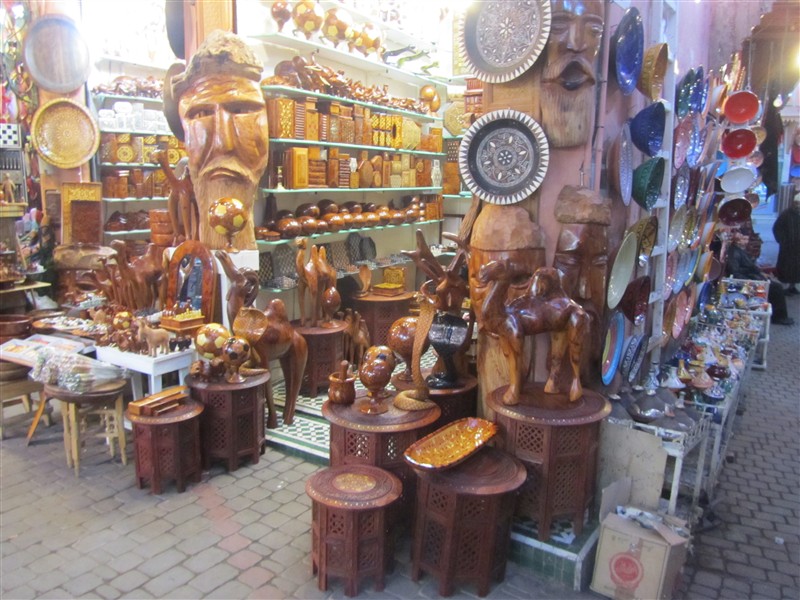 Sale of wood carvings in a souk in the Medina
