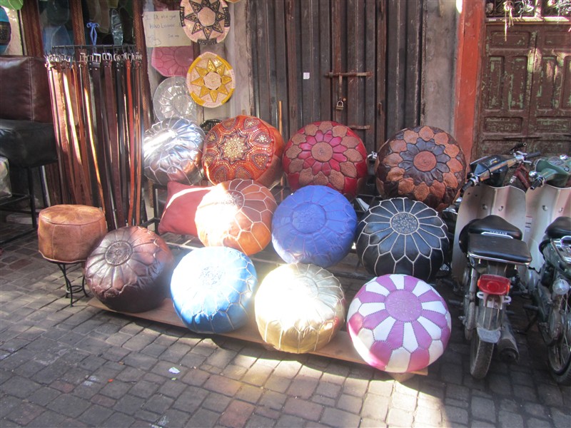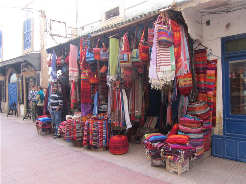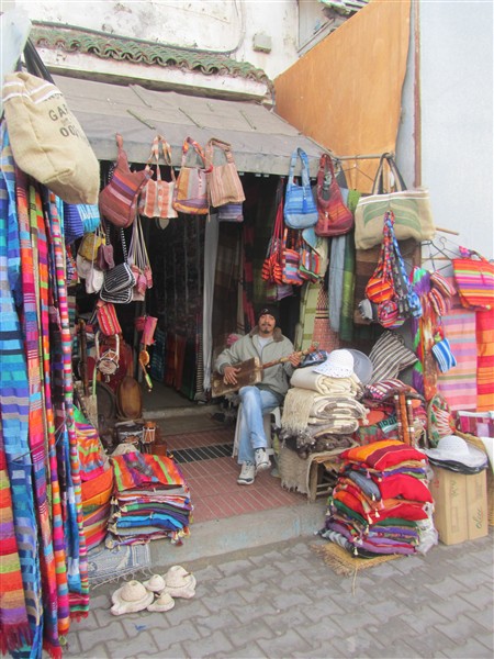 Sale of knitted canvases outside a shop in the Medina
