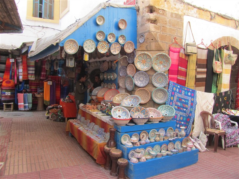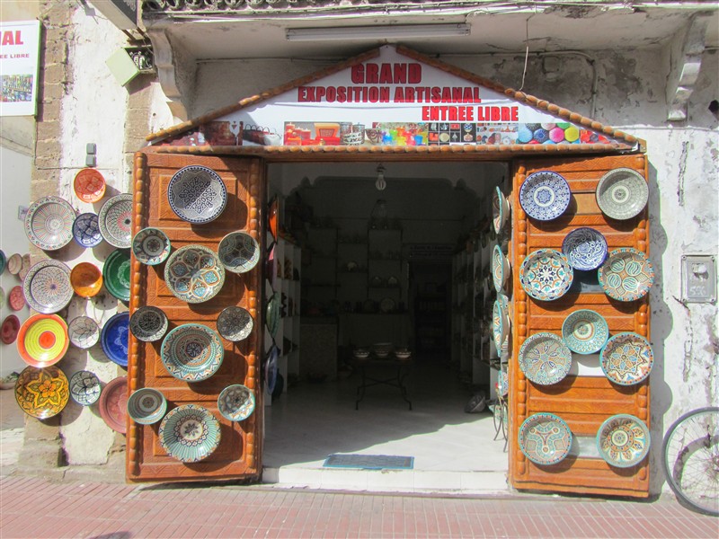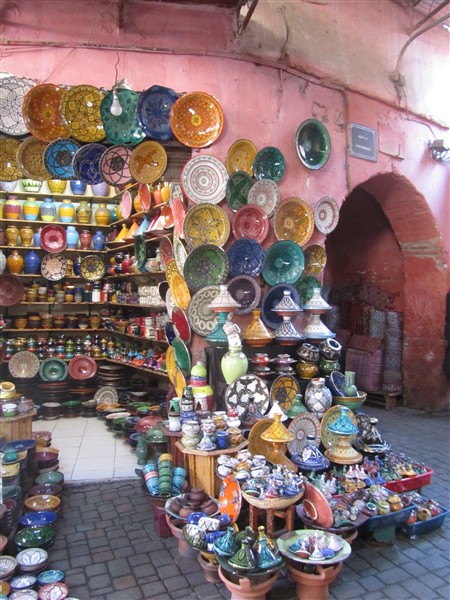 Sale of Moroccan plates in a souk in the Medina