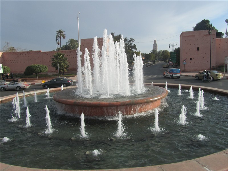 Springbrunnen und Kakteen in Jardin Majorelle