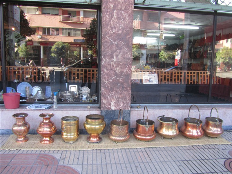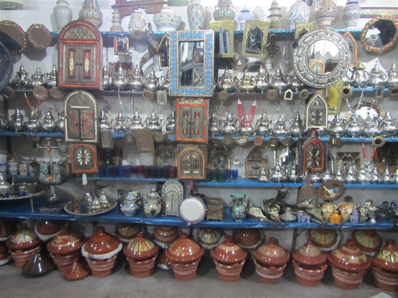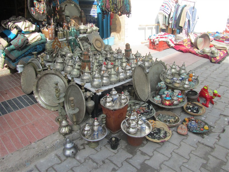 Sale of tea-pots in a souk in the Medina