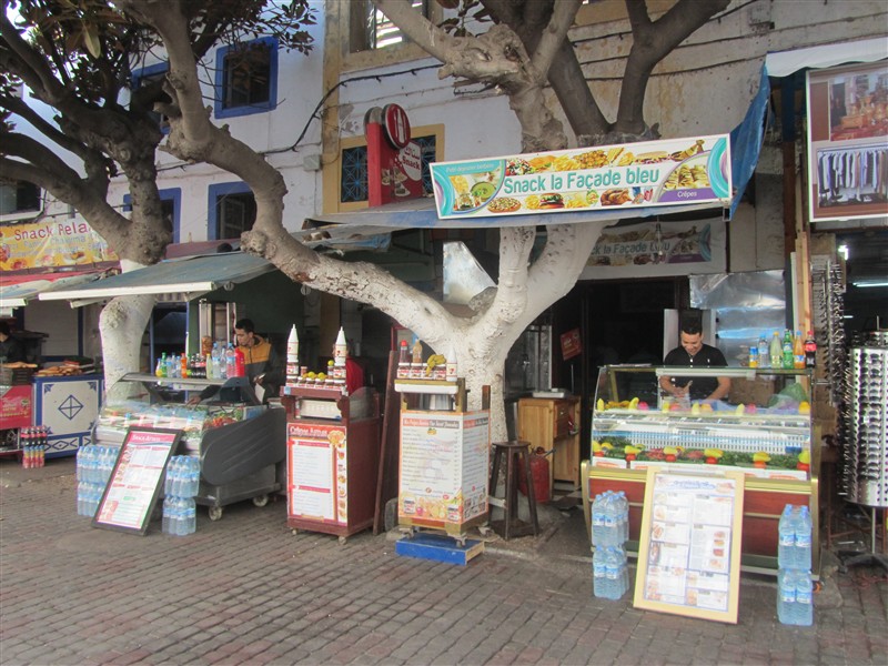 Fassade von einem Haus in einem Souk in der Medina von Essaouira