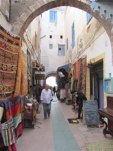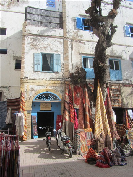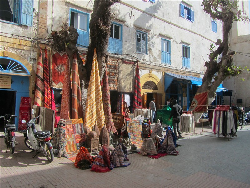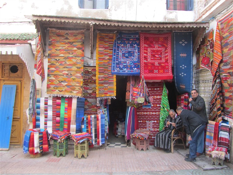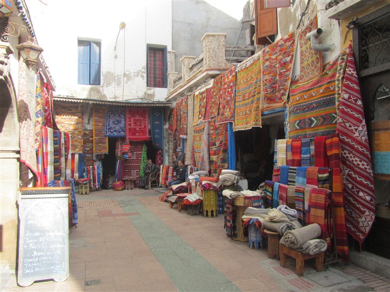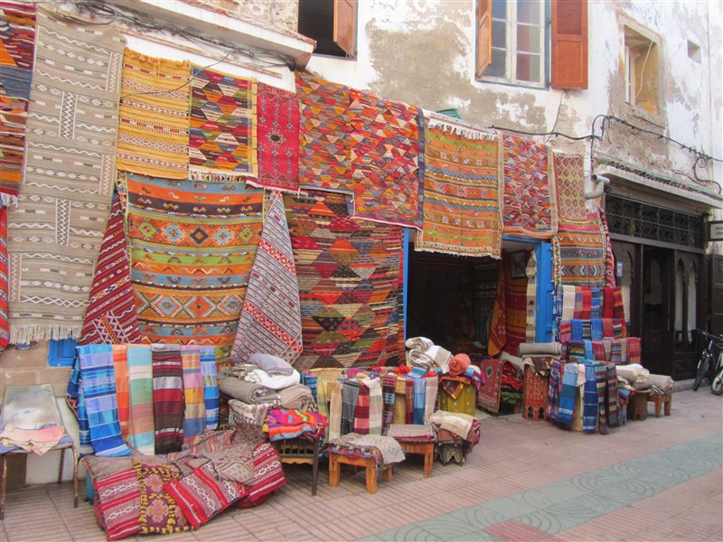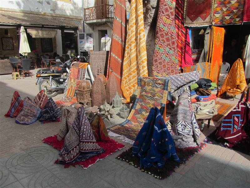 Sale of Moroccan carpets in a souk in the Medina of Essaouira