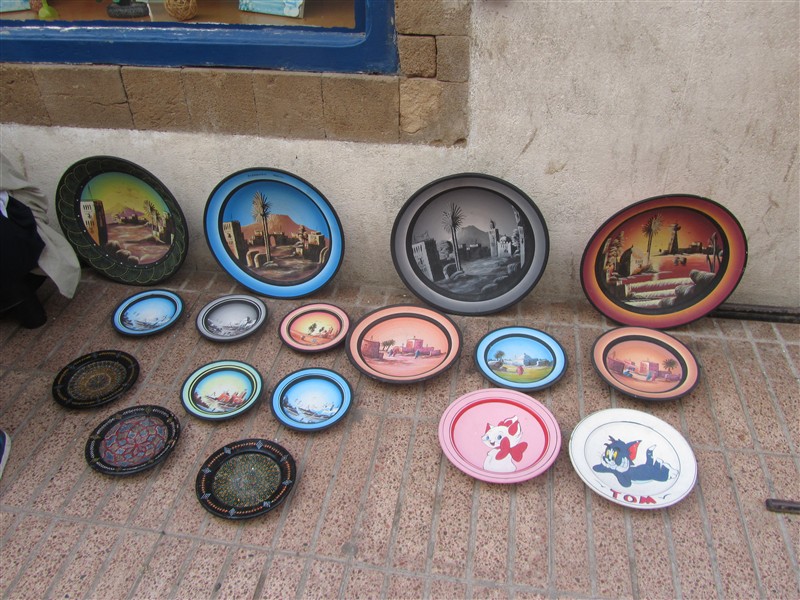 Plates of clay with subjects from Morocco for sale in the Medina