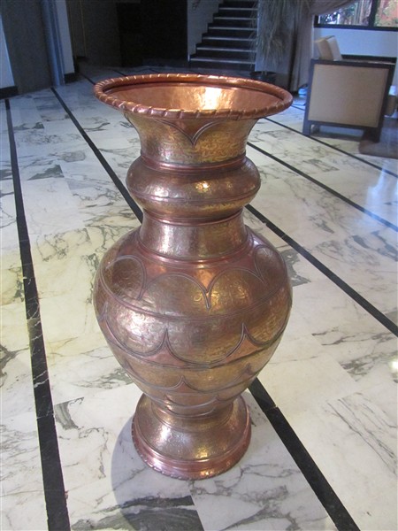 Large vase of copper in the foyer of the hotel