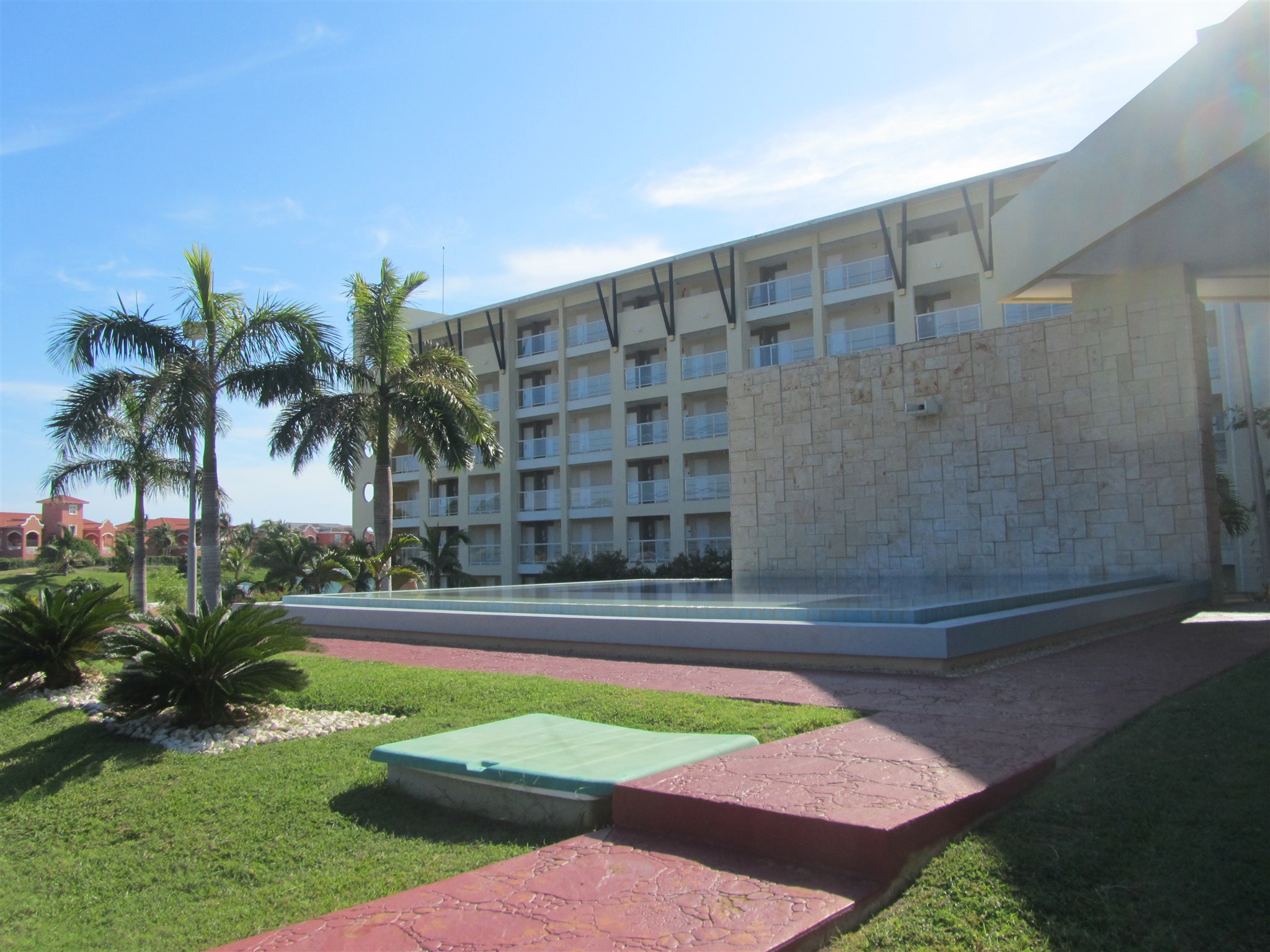 Pond with waterfall in front of this hotel from 2013
