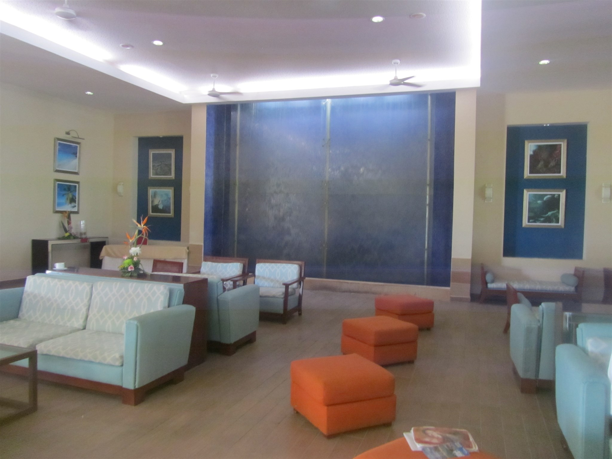 Floating waterfall on the wall in the foyer of the hotel