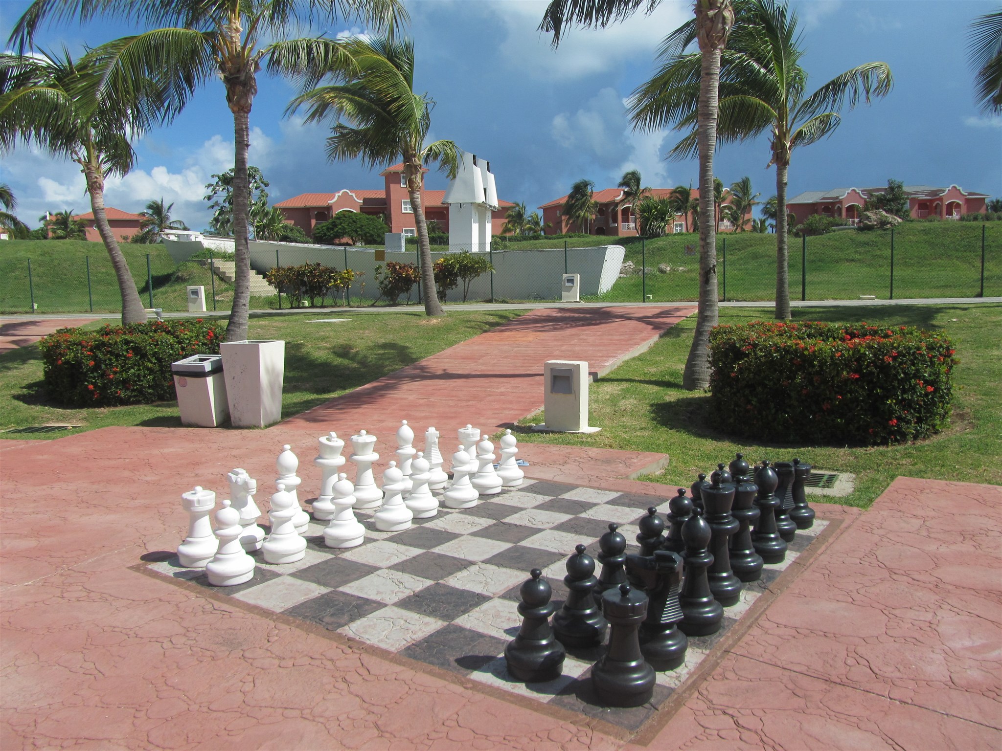 In dem Schwimm-Bassin Gebiet auf dieser Hotelanlage kann man auch Schach spielen