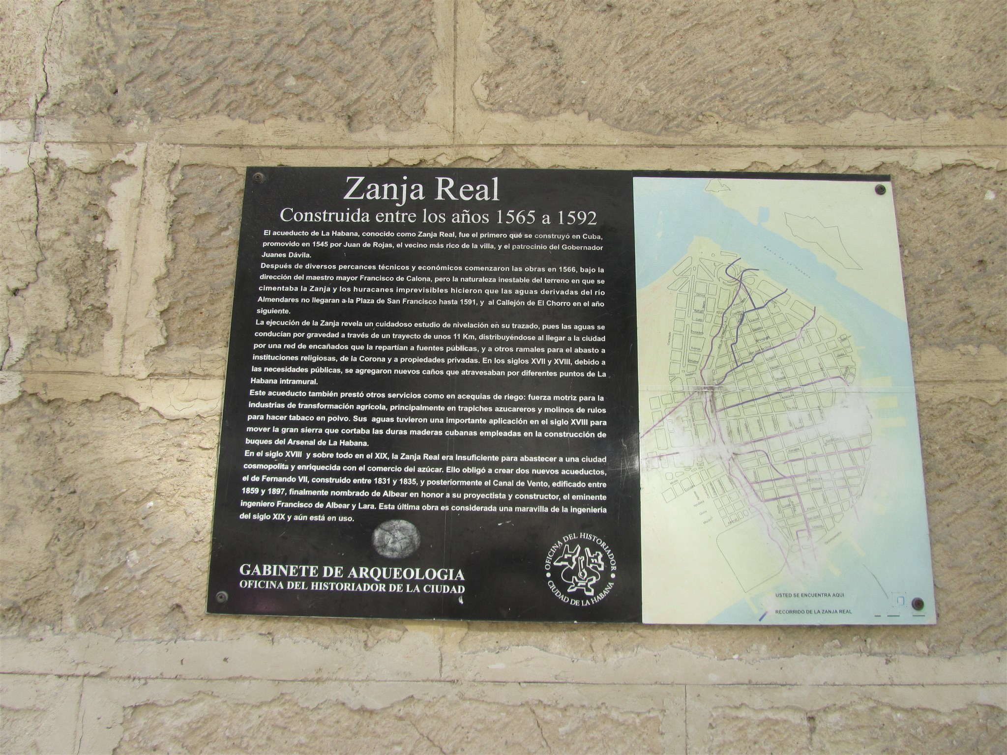 Information om "Zanja Real" som byggdes mellan åren 1565 - 1592