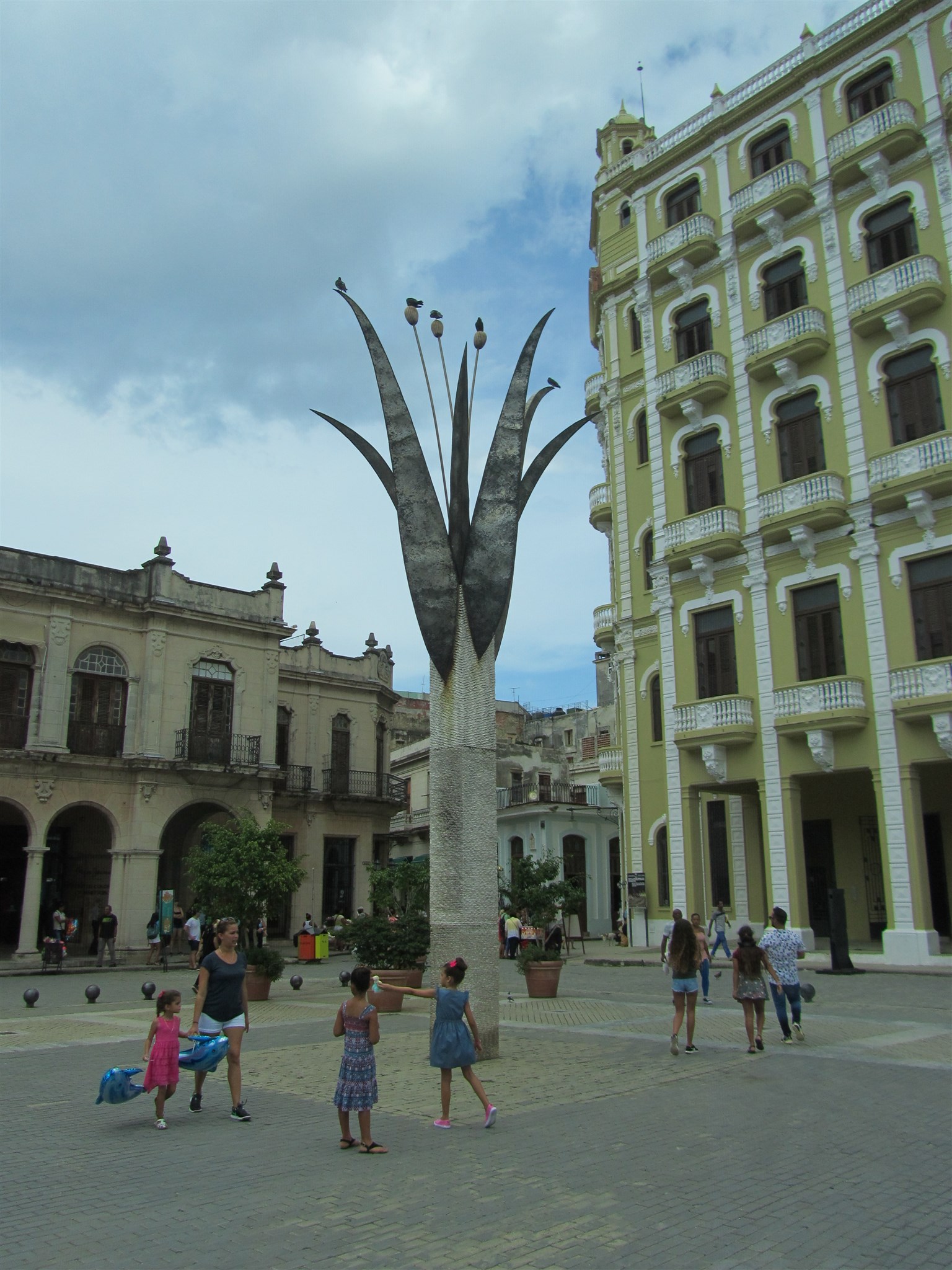 Skulptur von einer Blume auf "Plaza Vieja" in der Altstadt von Havana