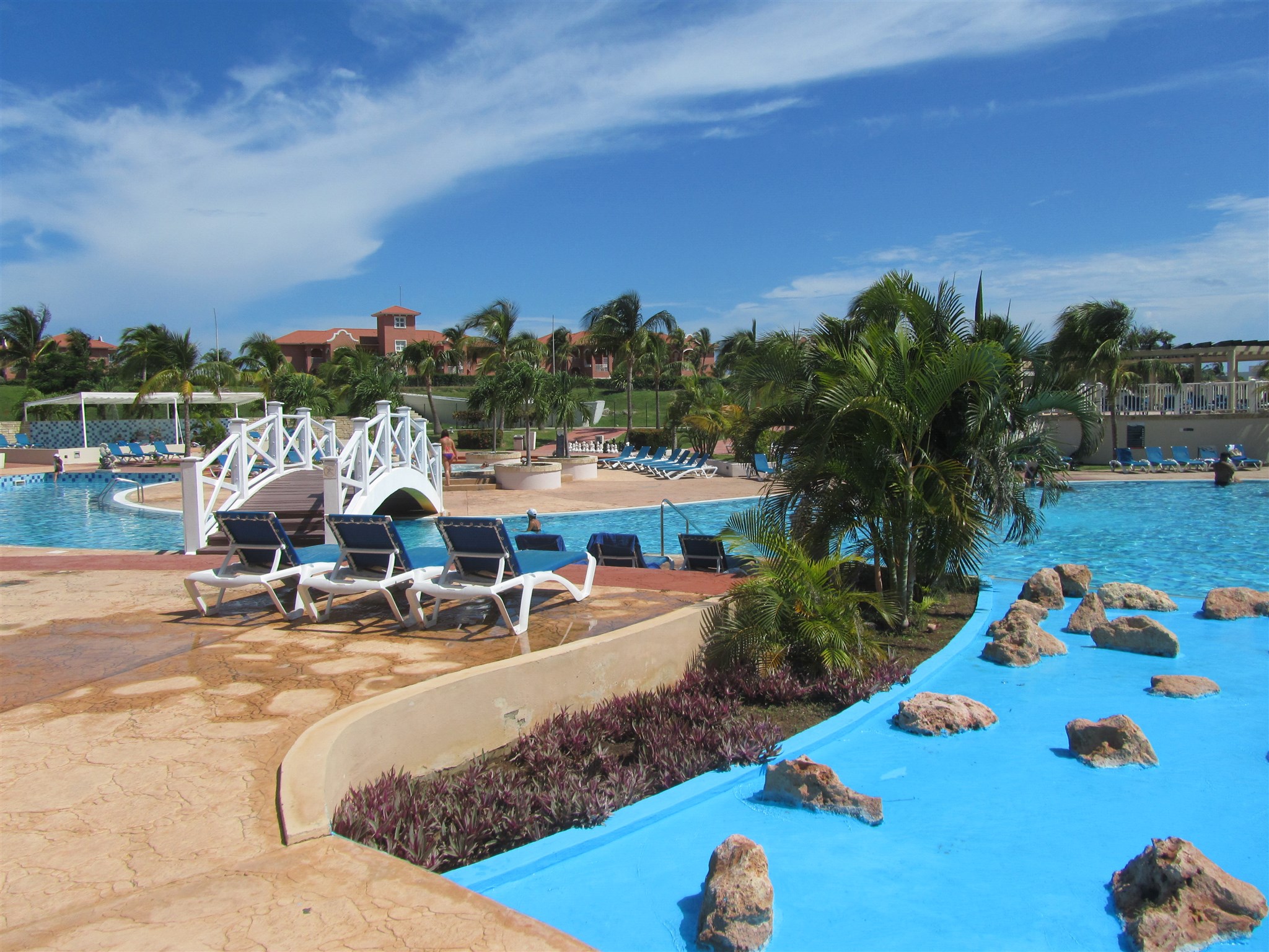 Brücke über das Schwimm-Bassin Gebiet der Hotelanlage wo ich wohne
