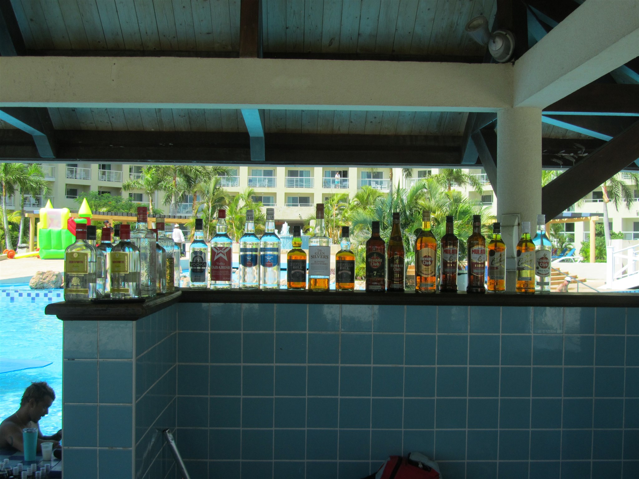 Noch mehr exklusive Schnapssorten bei der Bar in dem Schwimm-Bassin Gebiet dieser Hotelanlage