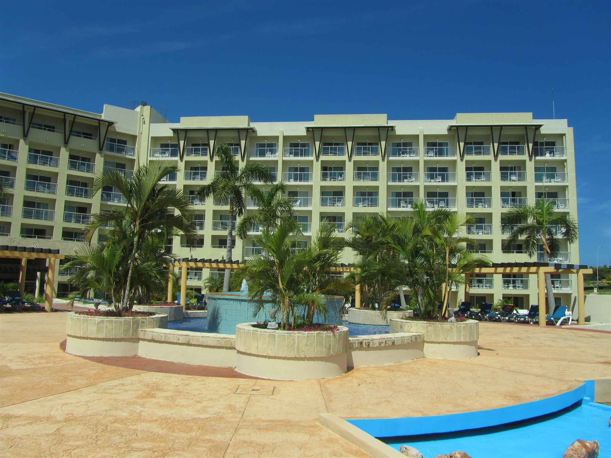 Fontain with palms in the swimming-pool area of this hotel facility