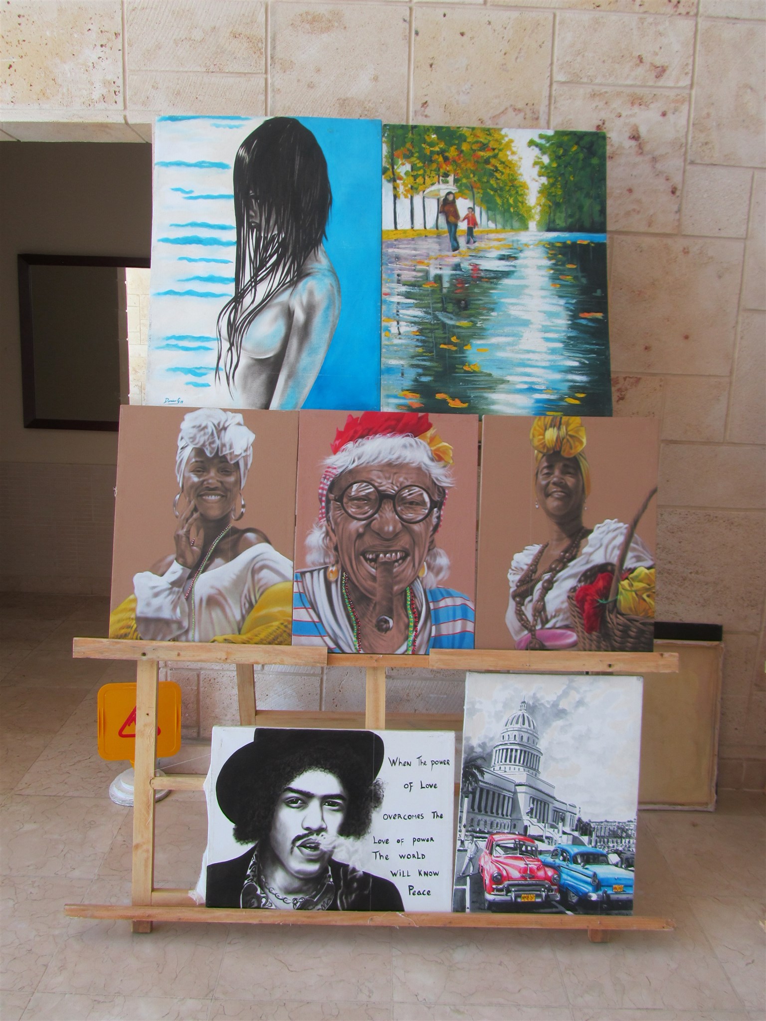 Art which is sold on the ground floor of the hotel facility at the swimming-pool area I stay at