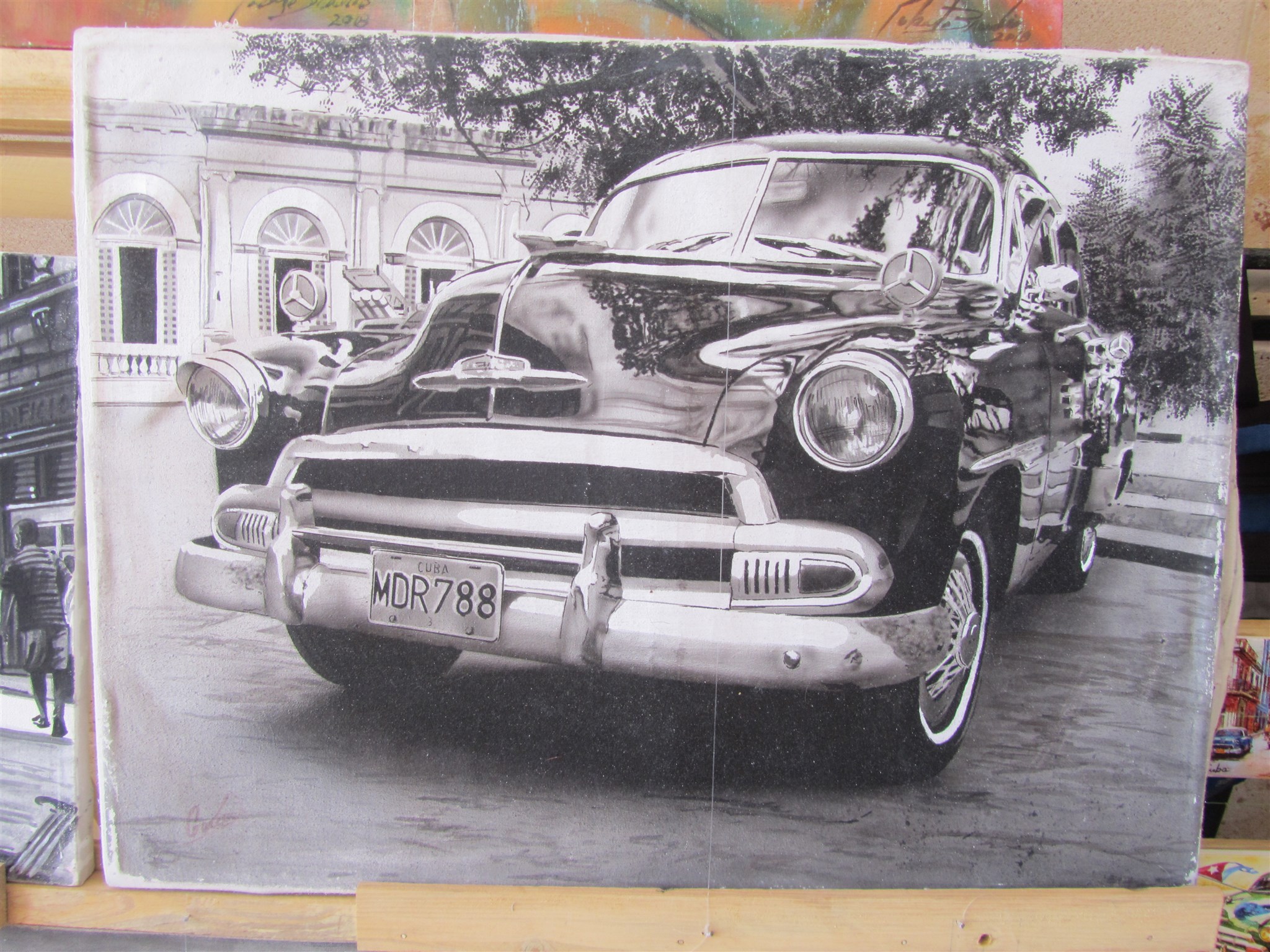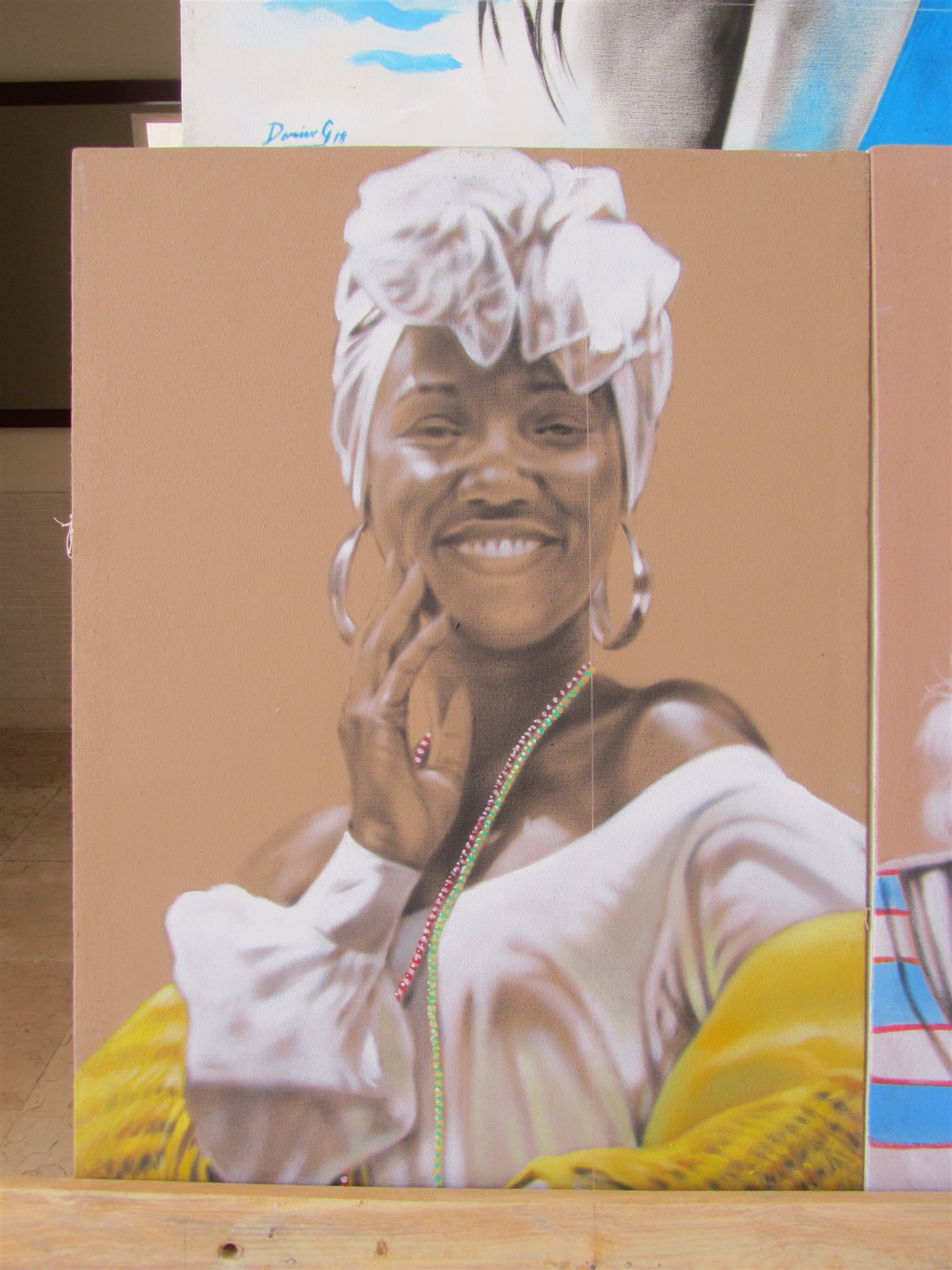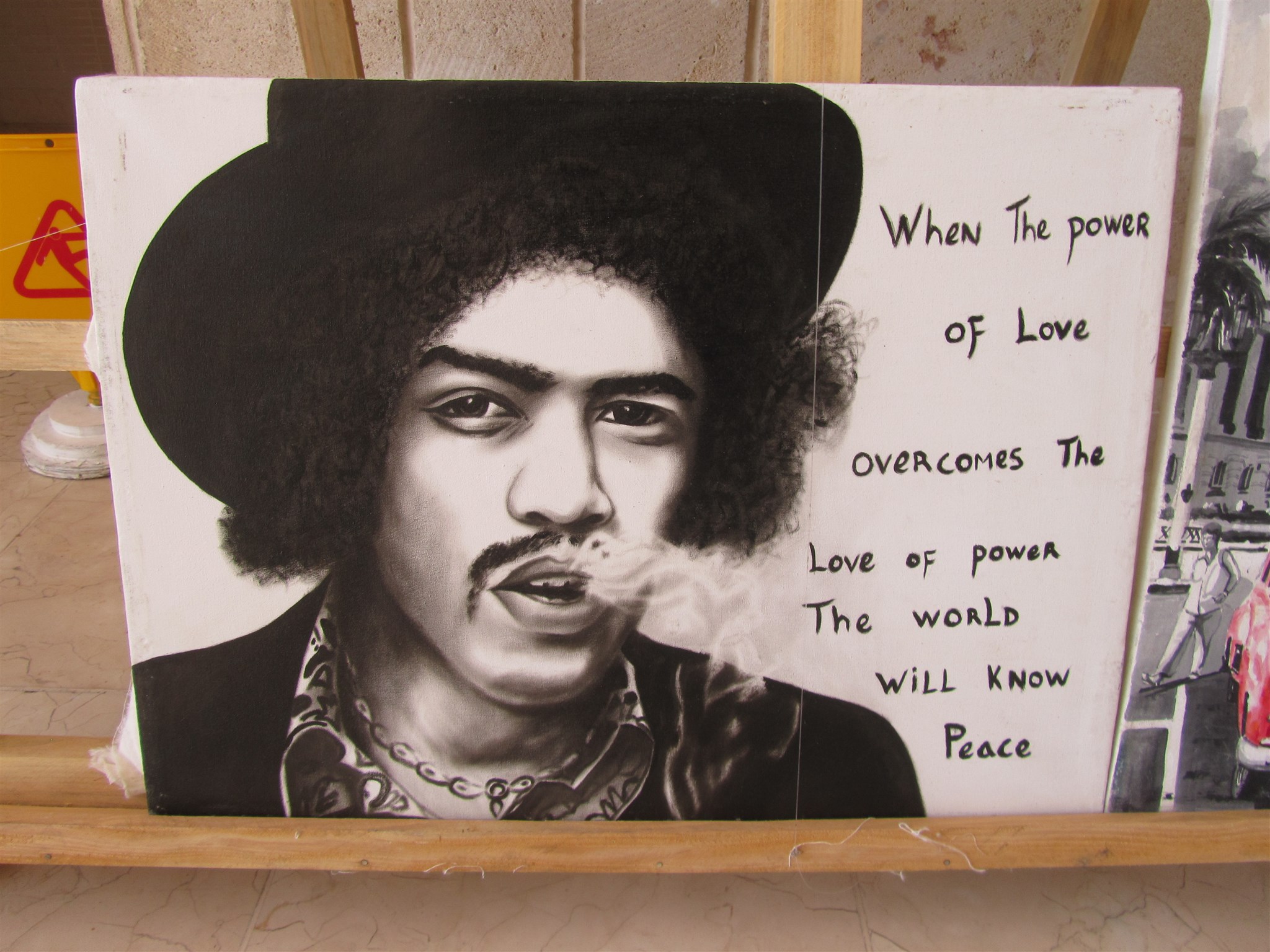 Konst som säljs på bottenvåningen av hotellanläggningen vid swimming-pool området jag bor på